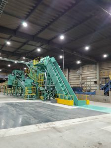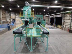 この機械が導入されたことにより、廃棄物はまずコンベアを上り、次にバリオセパレーター本体の中で風と振動による機械選別が行われます。