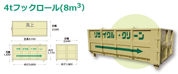 フックロール(8.0m3)は、大量に廃棄物が発生する場合の