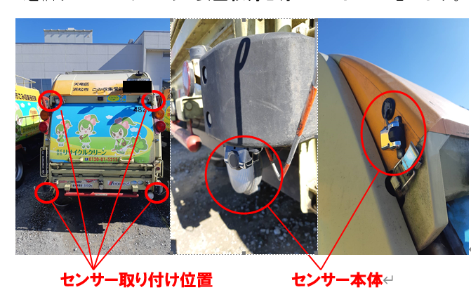センサーをパッカー車後部の上下左右の計4箇所に設置、障害物が1m以内にあると車内で警告音が鳴るシステムです。