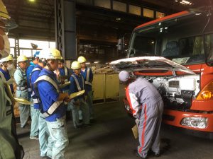 ドライバーの皆さん、質問したりして真剣な表情で聞き入って