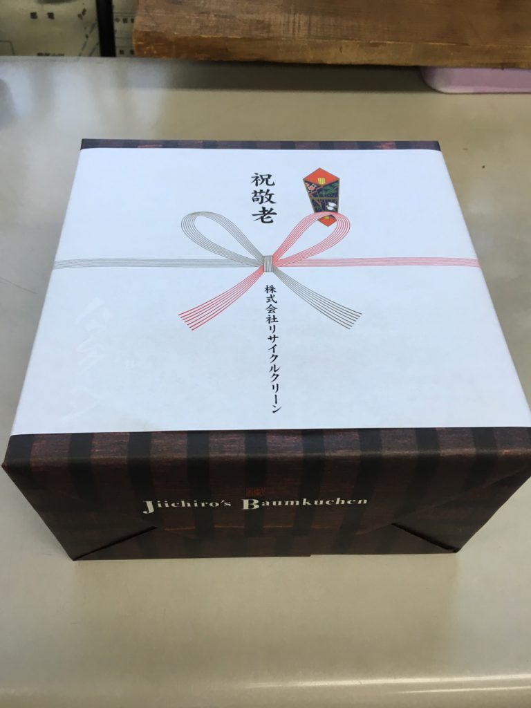 敬老の日 2017年9月18日 浜松営業所 こんにちは😊 浜松営業所です♪ 弊社では、60歳以上の社員の方に毎年敬老の日に 贈り物をしています。 浜松営業所は8名の方がいただきました。 今年は 治一郎のバームクーヘンです✨ 皆さん敬老と聞くと、まだそんな年じゃないな~と言いますが 嬉しそうにいただいています😊 まだまだ皆さん元気で頑張ってるので私も見習って頑張り たいです♪
