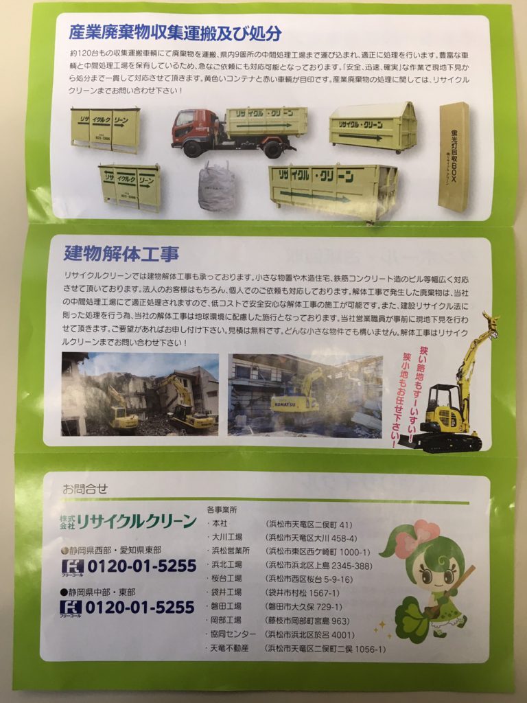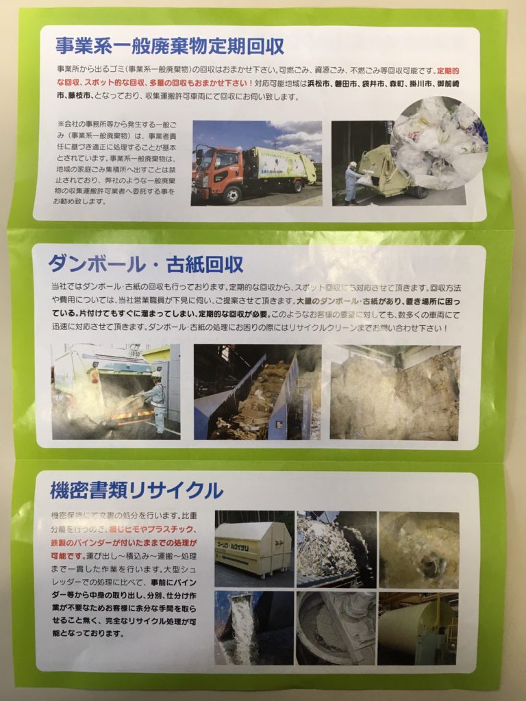 浜松営業所では、地域の自治会、幼稚園、小・中学校などの休日を利用した廃品回収を承っています。