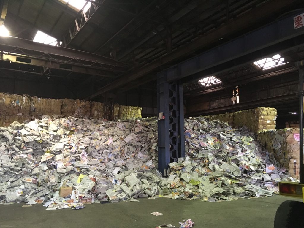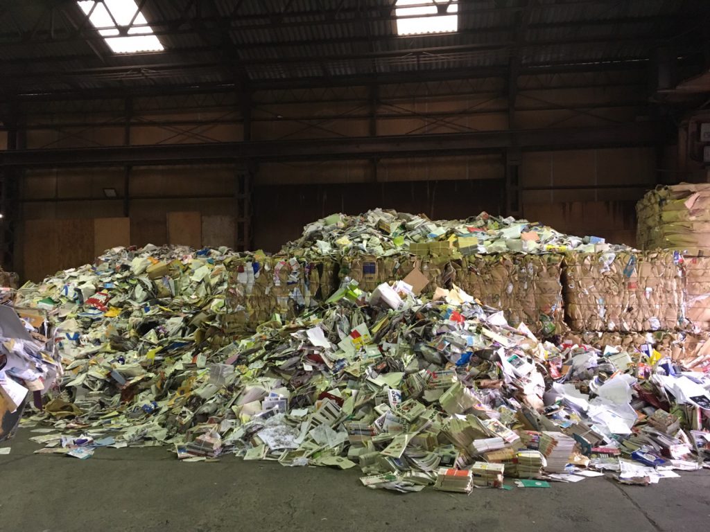 これらの古紙はプレスされ製紙会社に運ばれ新しい製品に生まれ