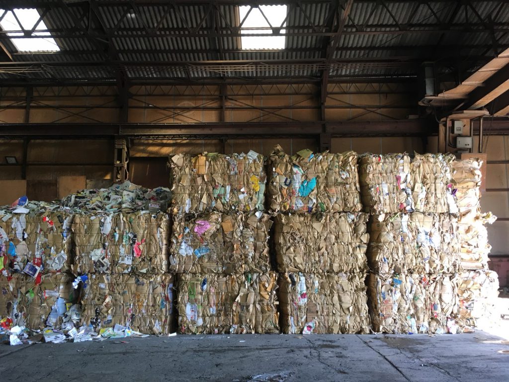 ダンボールのプレス品で壁を作ってその中に古紙をためています。