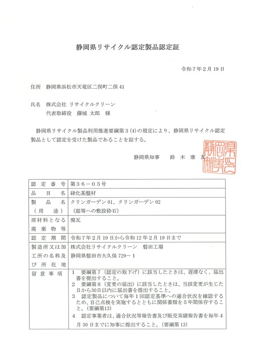 静岡県リサイクル認定製品に登録されました(*´▽`*)