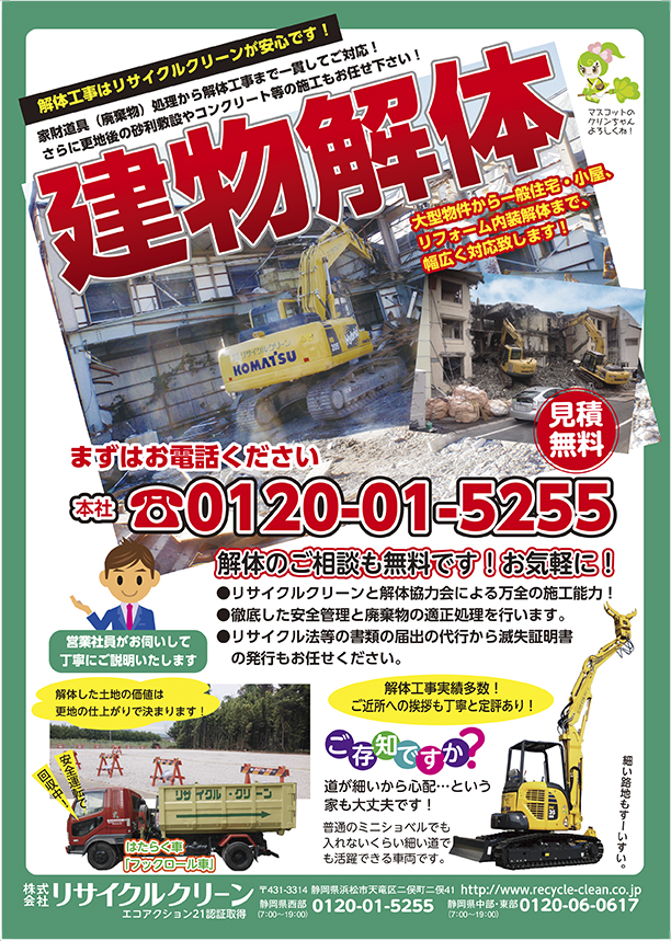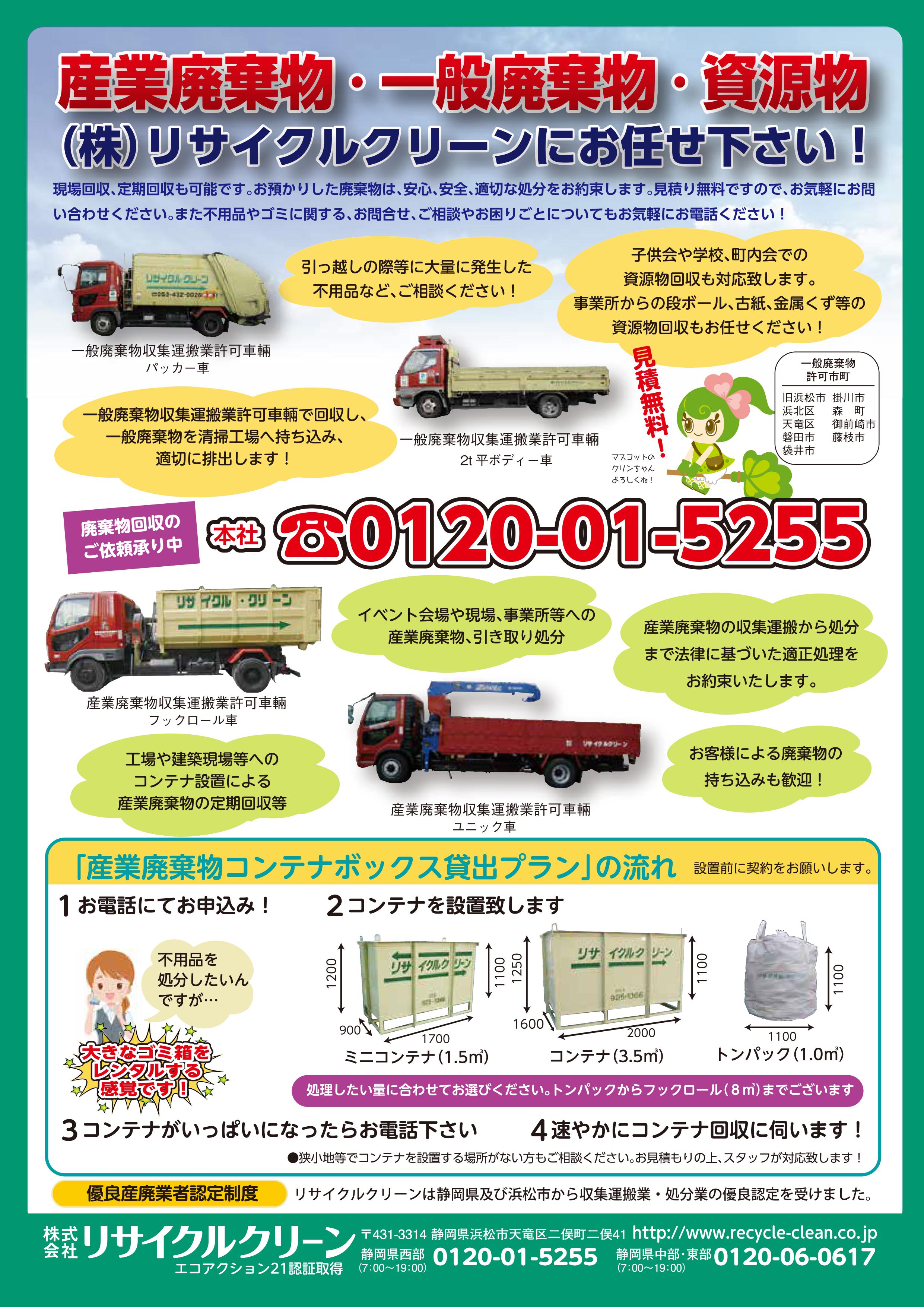 処理委託先の不適正処理に巻き込まれるリスクを大幅に軽減することができます。適正に処理致しますので、リサイクルクリーンに安心してお任せ下さい!