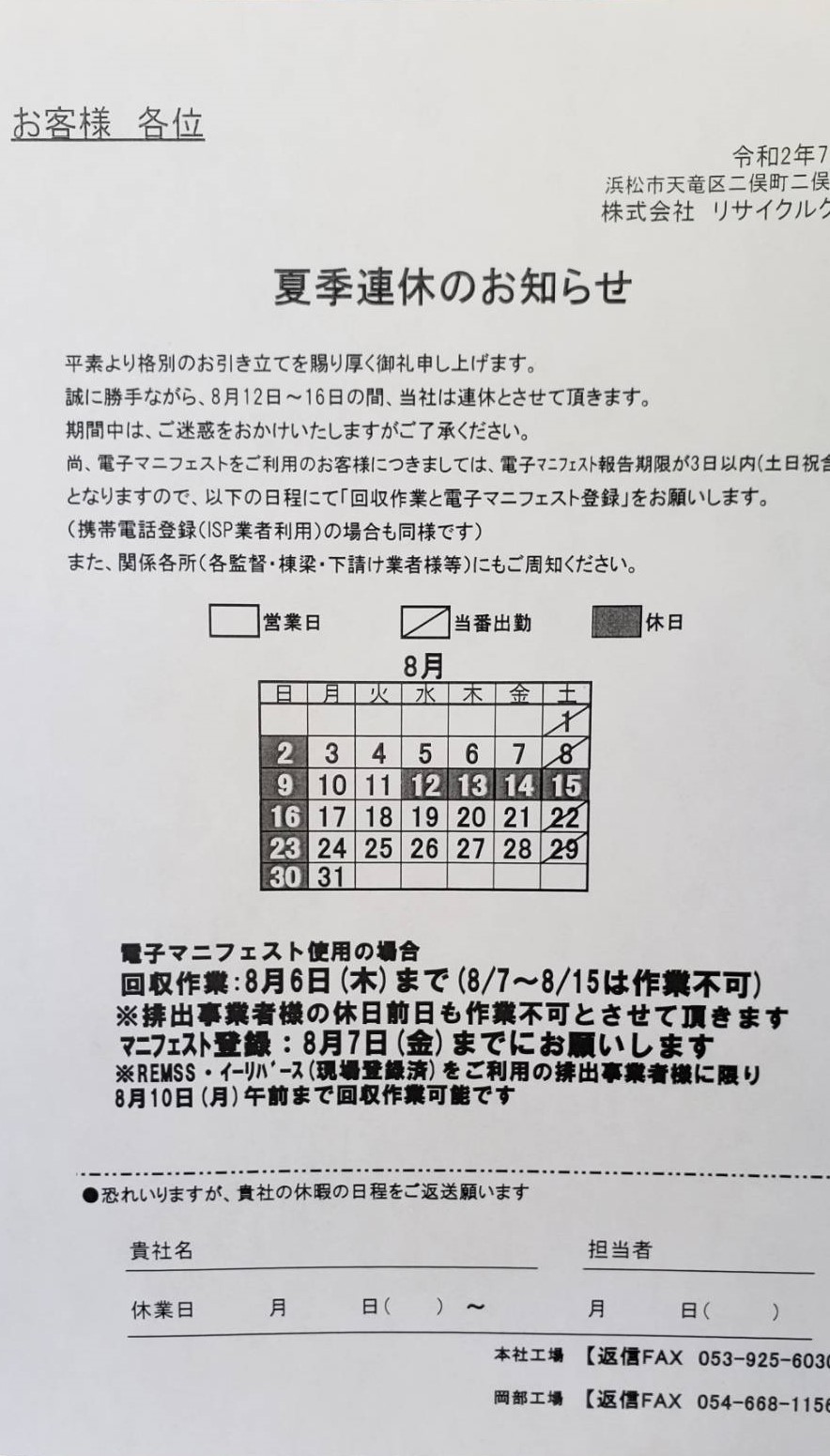 こんにちは☀ (株)リサイクルクリーン磐田工場です。