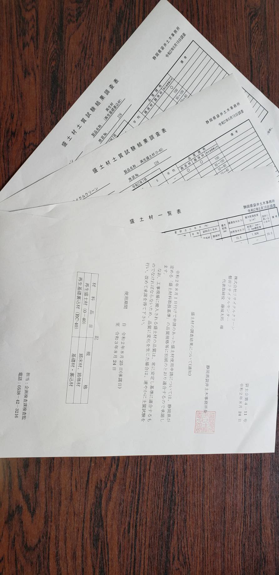 静岡県が定める『盛土材料取扱基準』の品質規格等に適合し