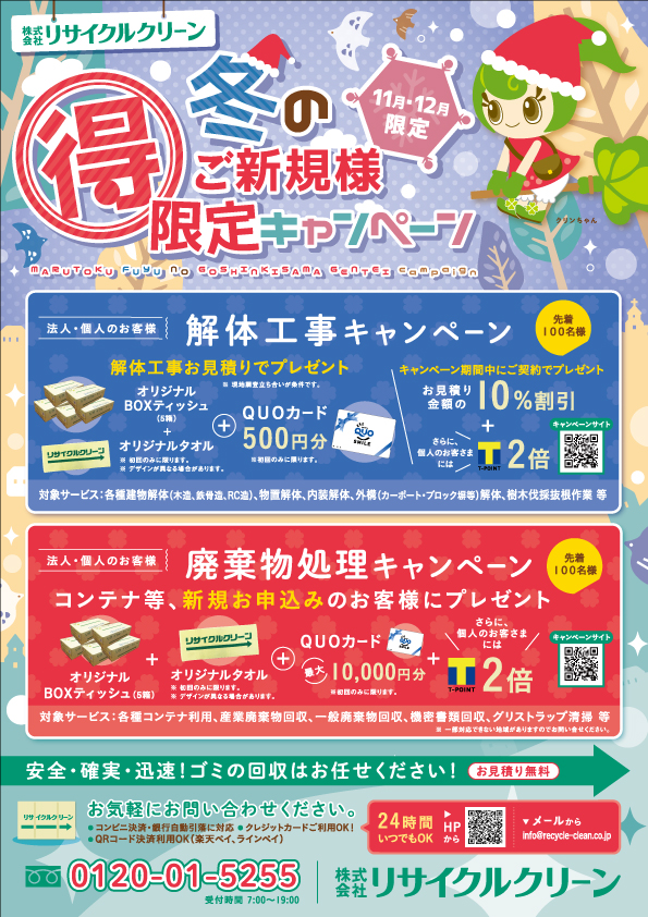 冬11・12月のご新規様限定キャンパーンが始まりました。