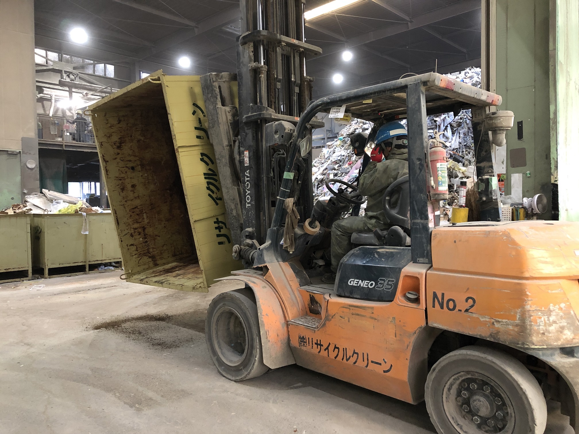 この時は前選でテキパキと動いていましたが、普段は破砕機を使ったり中間処理後の廃棄物の出荷を担当しています。