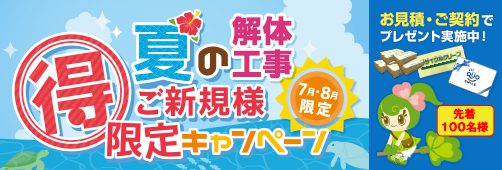 廃棄物処理・解体工事ともに先着100名様が対象です。