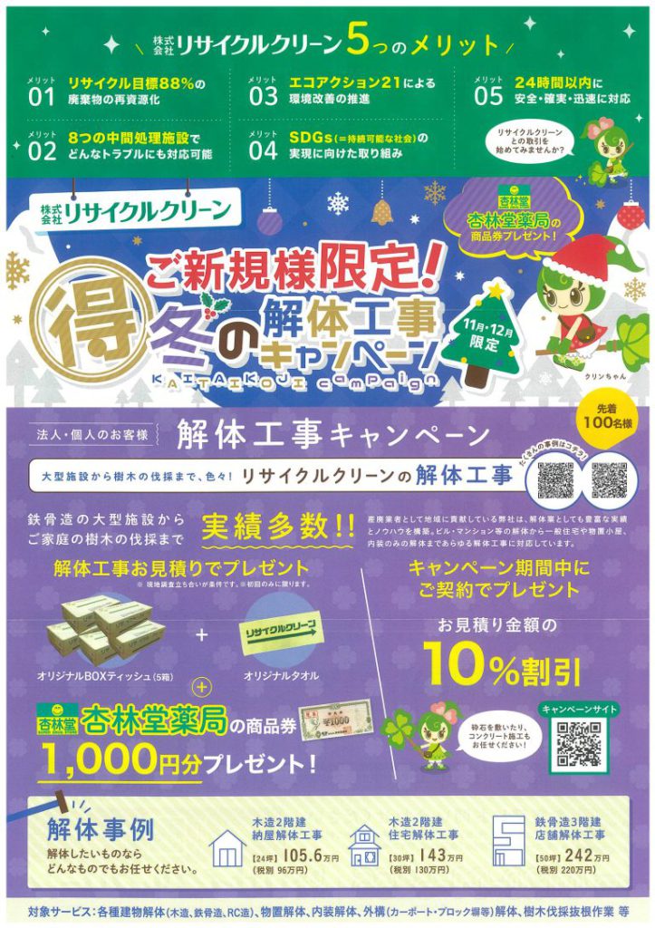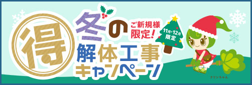 気になっていた片付けや年末の大掃除、ご自宅の建替えによる解体工事を、リサイクルクリーンのお得なキャンペーンを利用して身の周りをスッキリ!