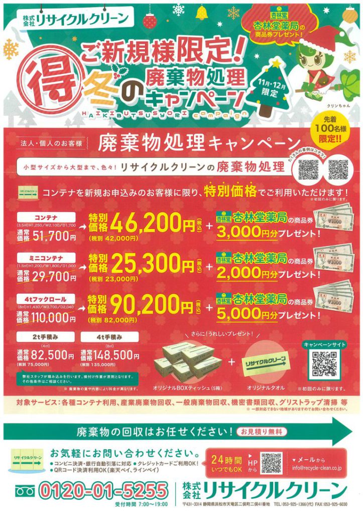 リサイクルクリーンでは12月末までの期間限定キャンペーンを開催中です!