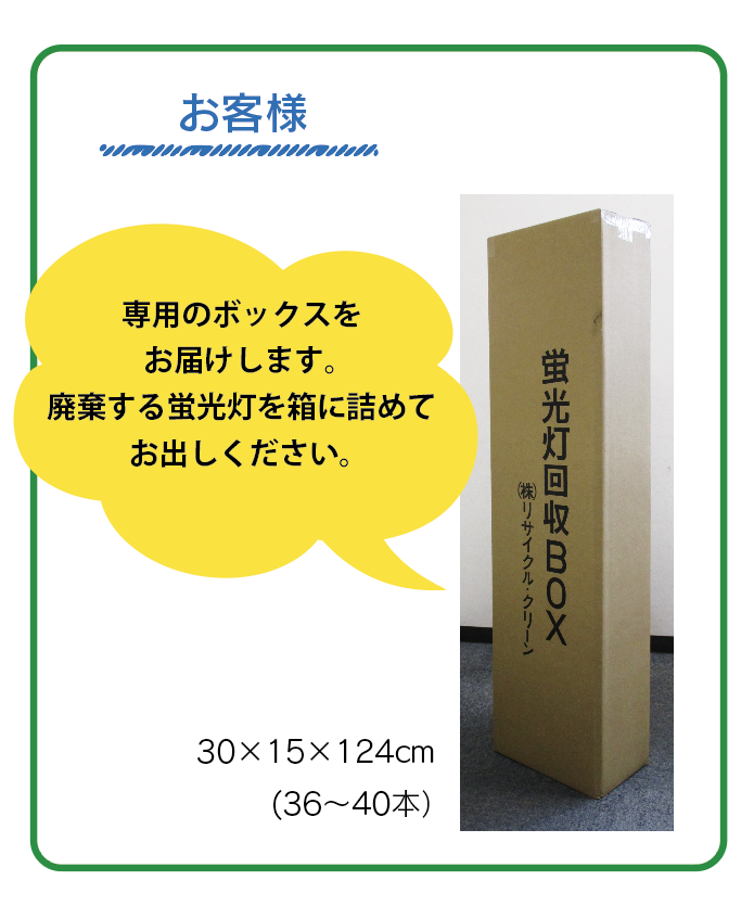 この回収BOXに蛍光灯を保管して頂き、ご連絡頂きましたら契約先の処分場へと弊社が運搬致します。