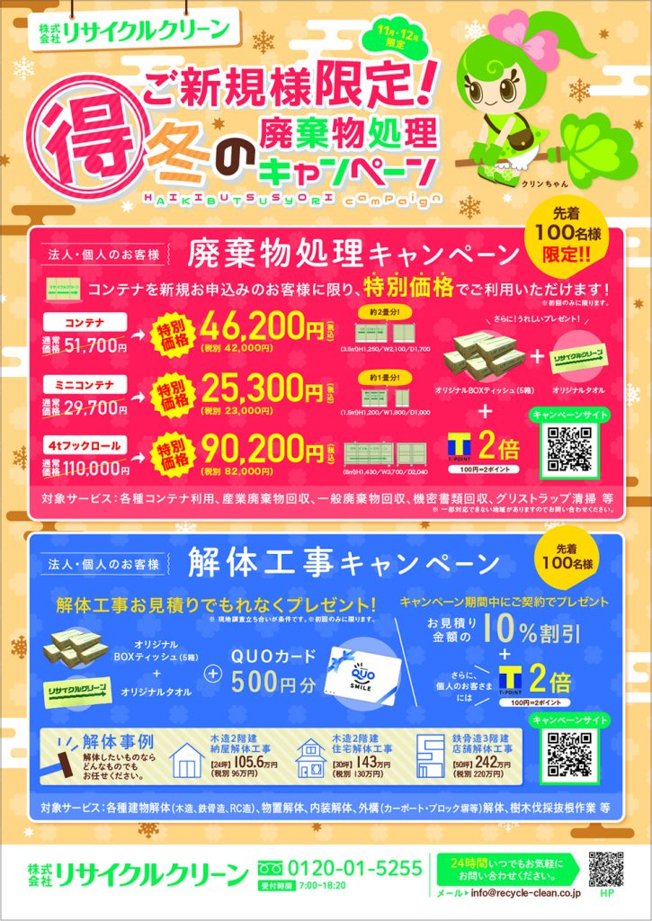 リサイクルクリーンの取扱い業務のひとつ、解体工事は今がおすすめ!!