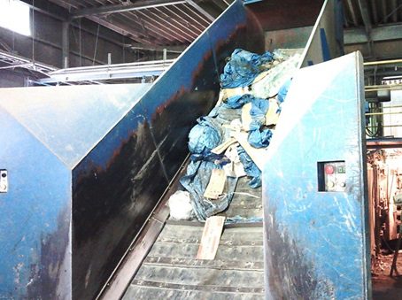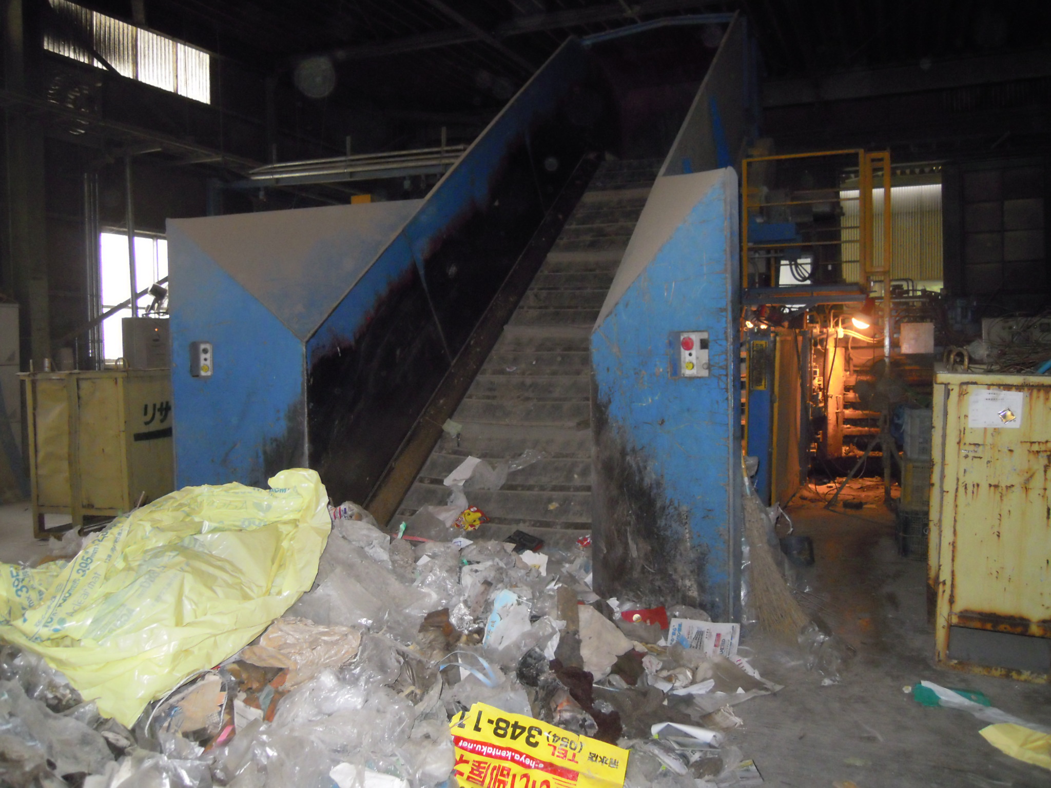 前回もご案内した通り、産業廃棄物が弊社工場に持ち込まれた場合、重機と人の手で主に大きなものを分別する「粗選別」が行われます。