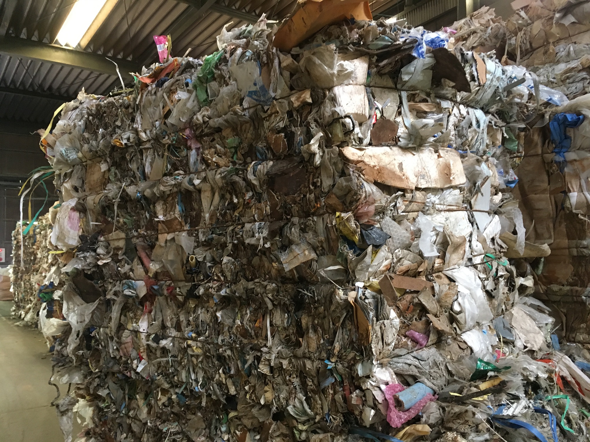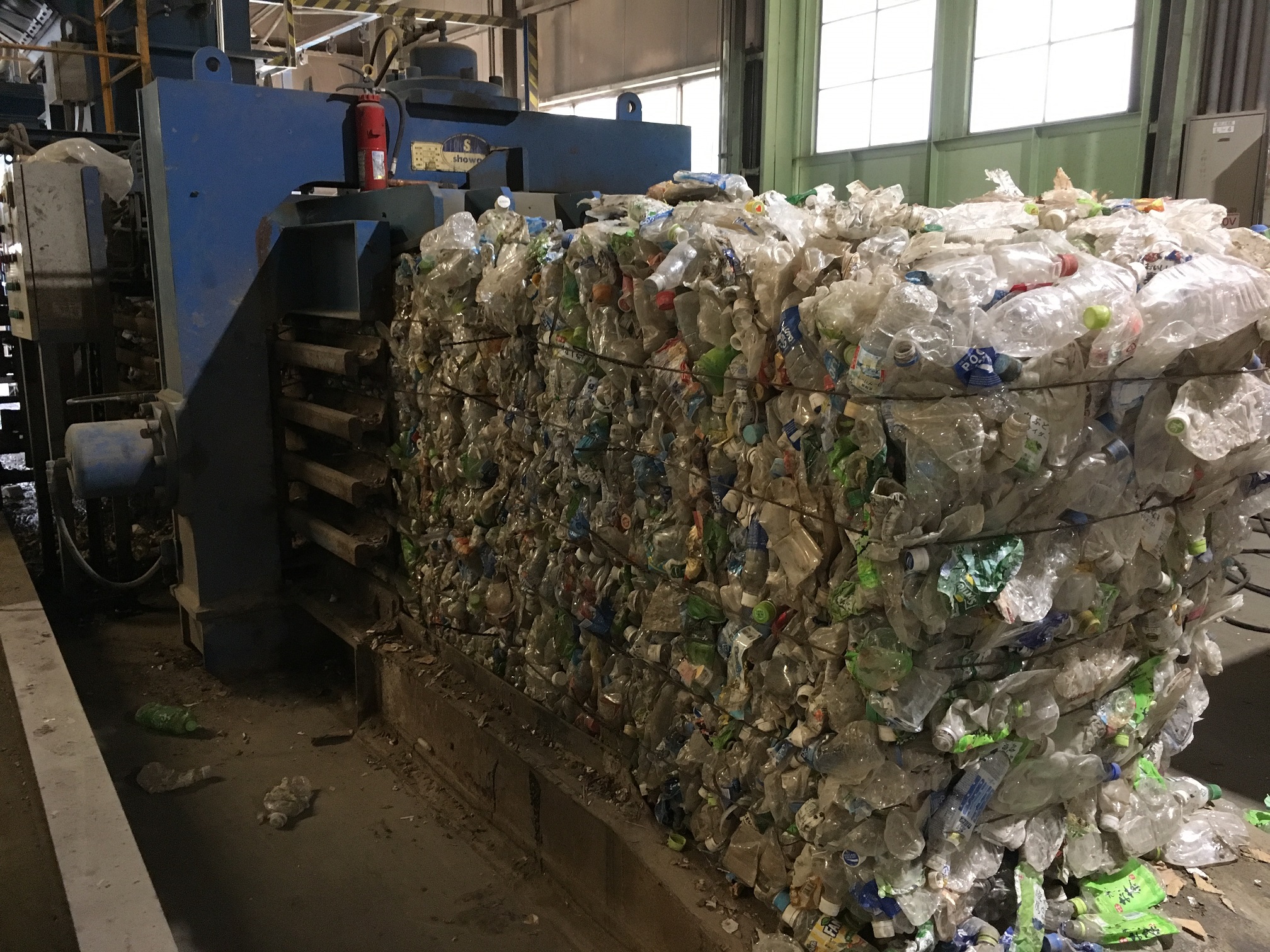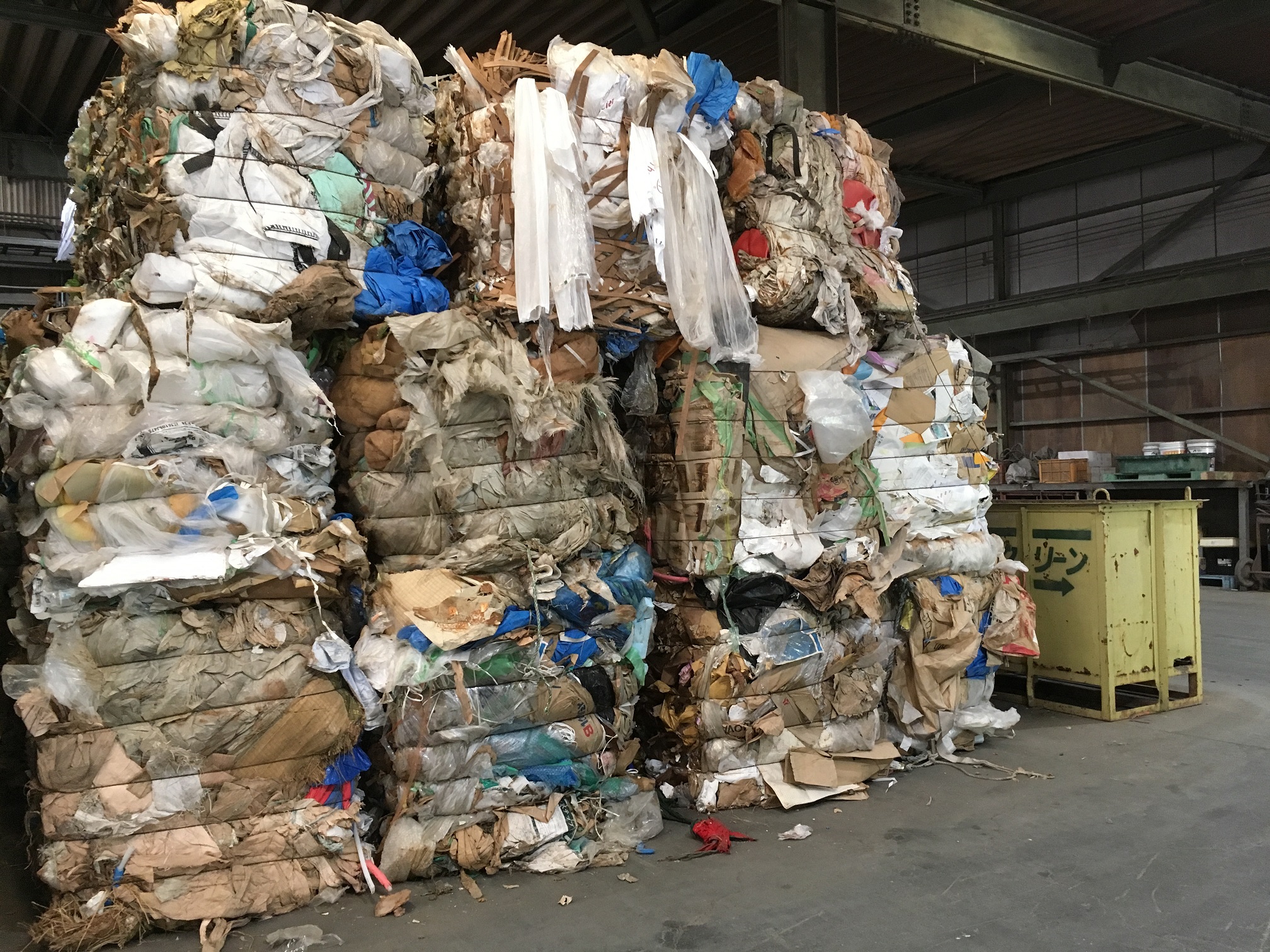 その際にビニール等の廃プラスチック類や、ダンボール等はその後の「自動選別ライン」には流さずに、「圧縮梱包機」にて圧縮処理をするんですo(・ω・´o)