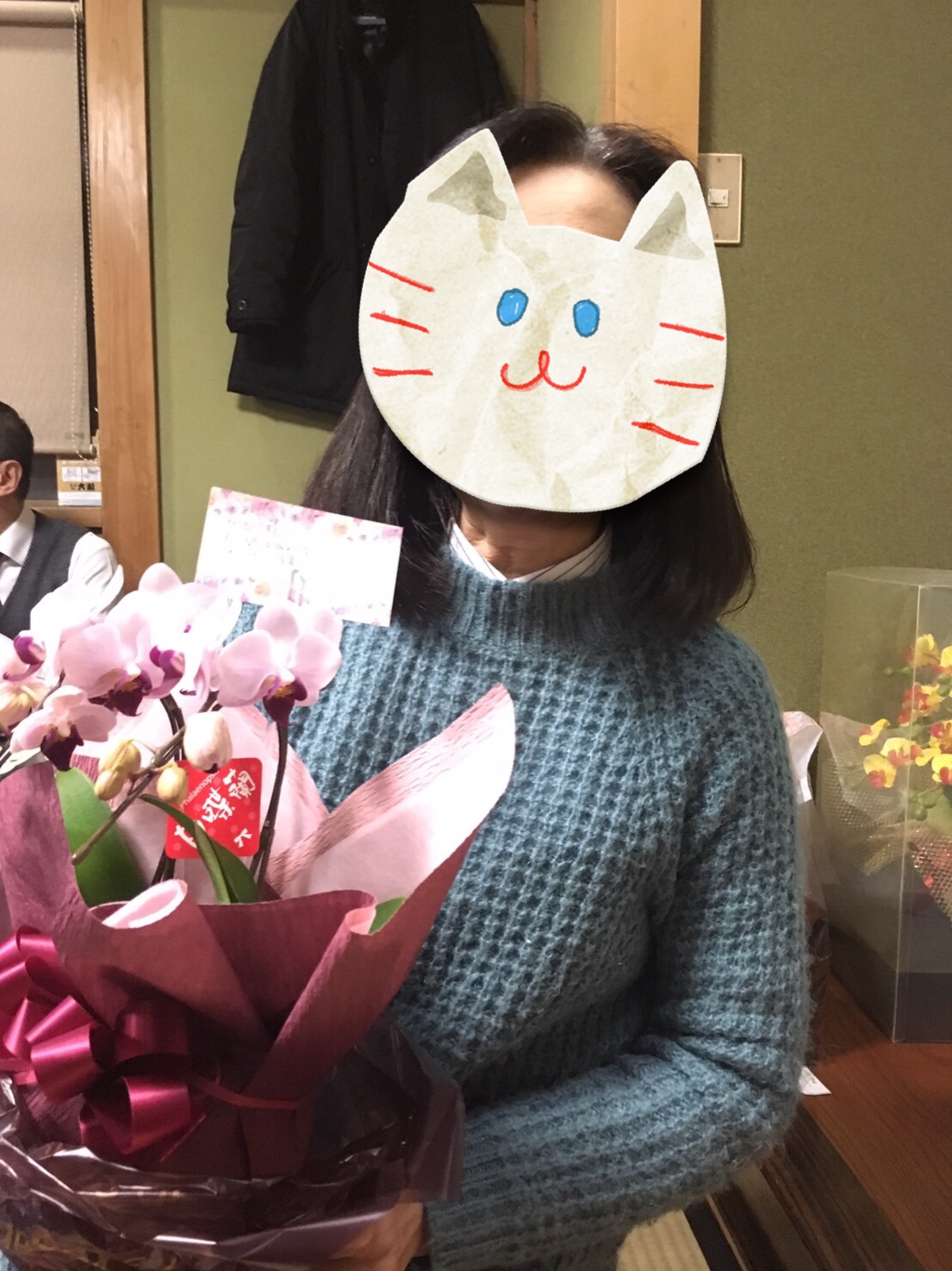 そして、参加できなかった私たち岡部工場事務員からは、ささやかながらお花をプレゼントさせて頂きました。
