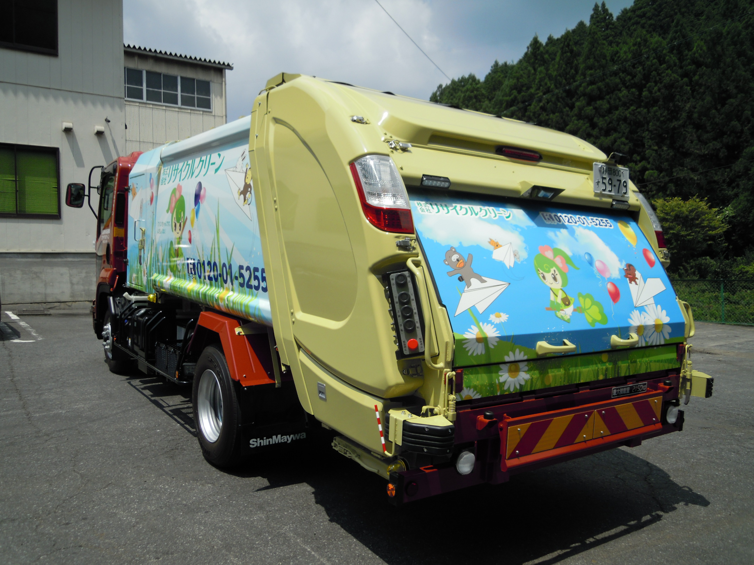 事務所や店舗から定期的に出るゴミを、クリンちゃんでラッピングされたパッカー車で回収にお伺い致します!
