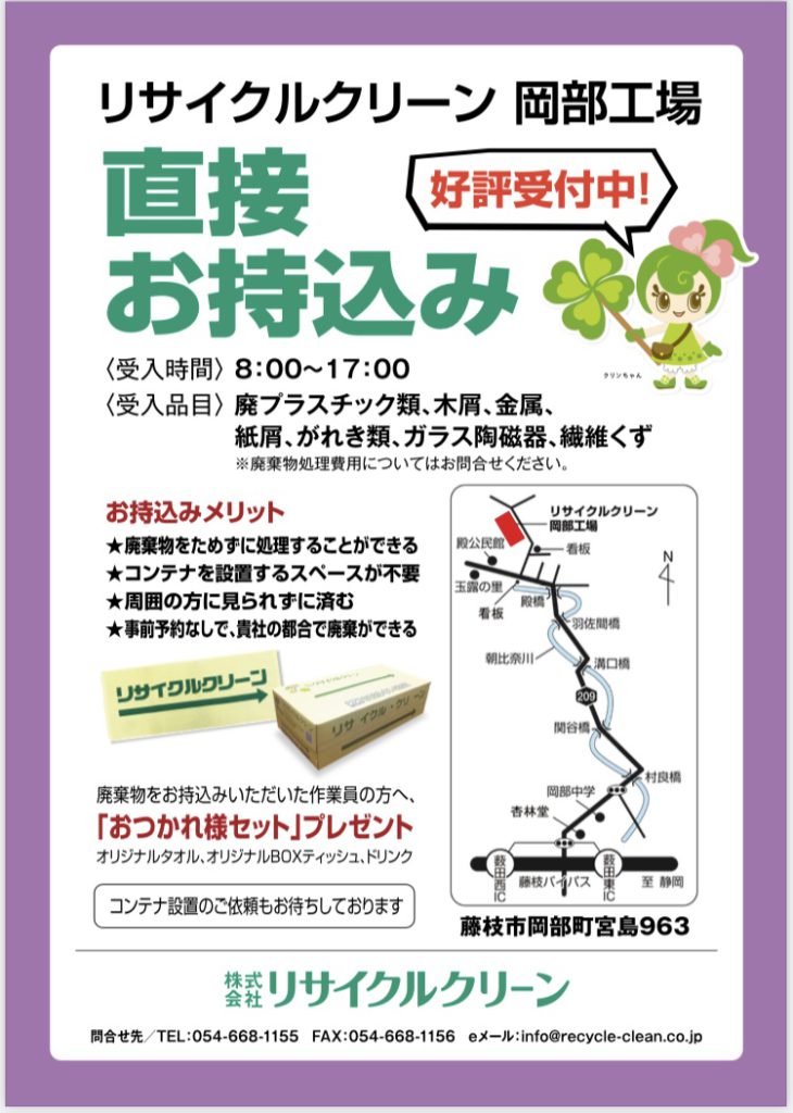 藤枝市岡部町地内に所在のリサイクルクリーン岡部工場で荷受けできる廃棄物の種類は以下の通りです☟