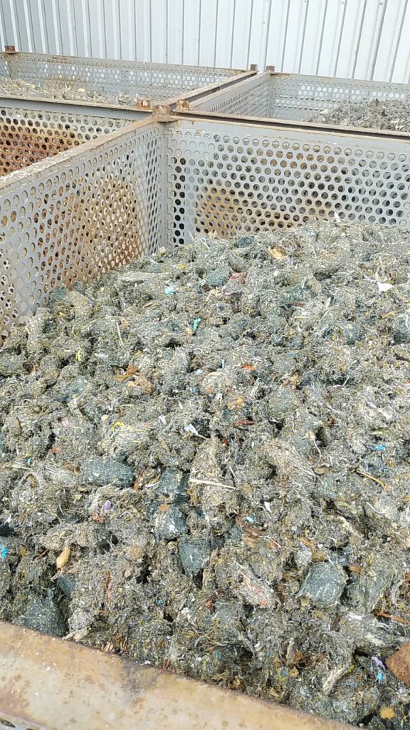 粉々に粉砕された畳と廃プラスチック類が混ざりあい