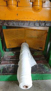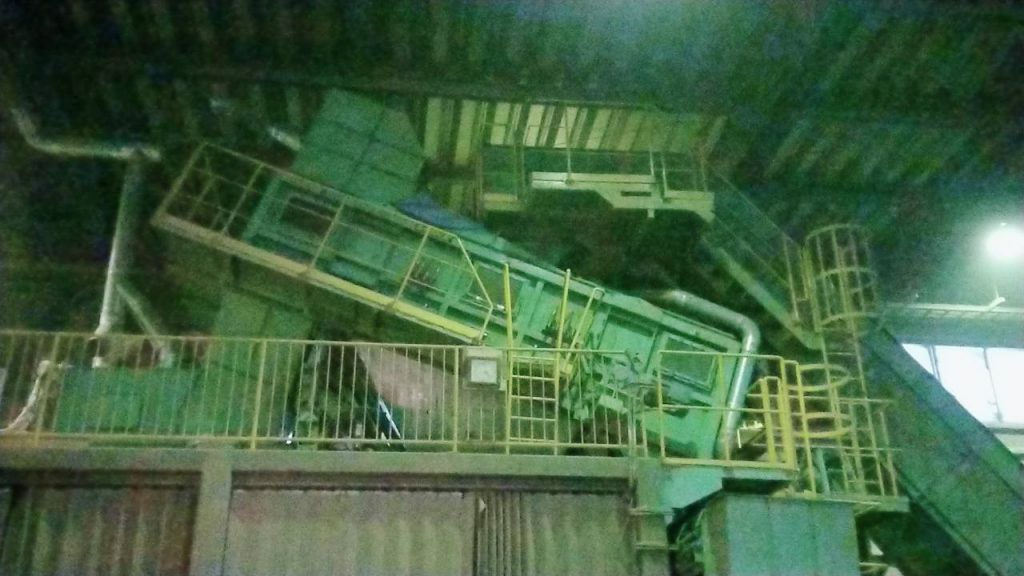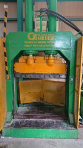 切断機はロール状ひも状になった廃棄物(鉄以外)を