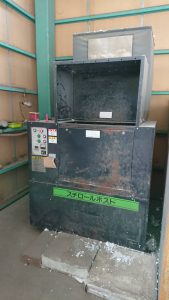 低比重物圧縮梱包機へ投入し、飛ばされなかった重量物を