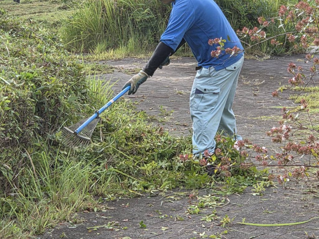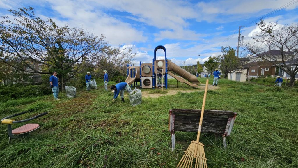 ↑公園にて、草刈り機を用いて作業しております。
