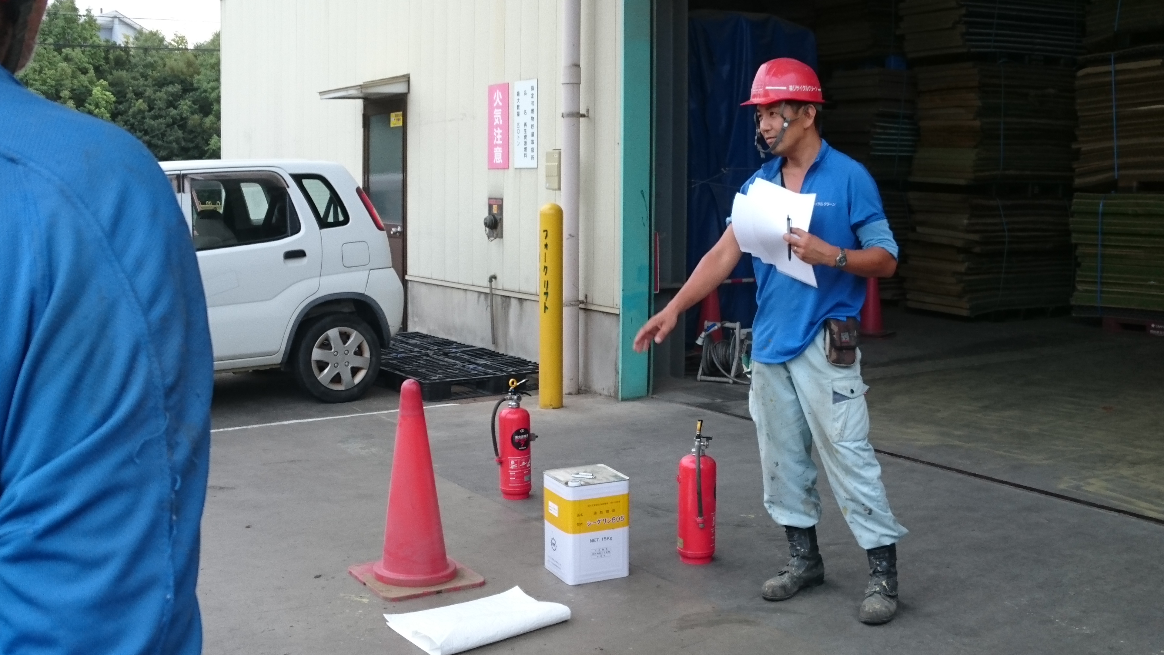 未分類 防災訓練を実施しました 2017年9月6日 桜台工場 9月1日(金) 工場長指示のもと 緊急時対応 訓練をしました 緊急時のマニュアルをみて… ドライバー、構内作業員、事務員 合同で確認しました 久しぶりに消火器を触ったような気がします もしもの時に備え、迅速な対応をしたいと思います