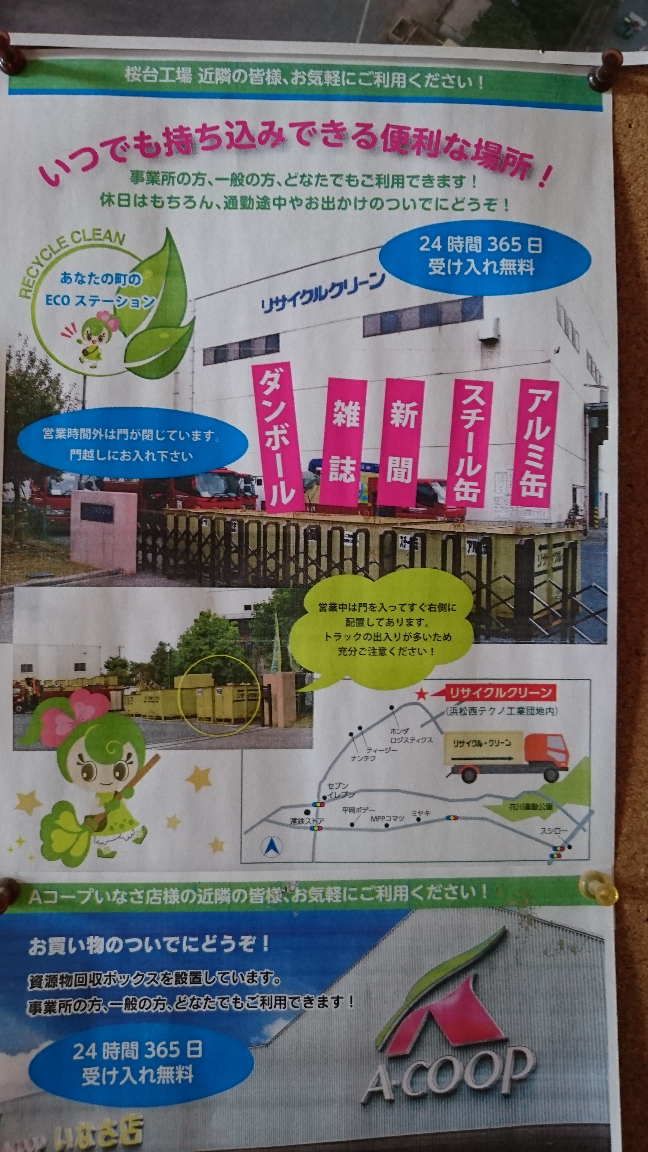 受入可能品目・・・ダンボール、新聞、雑誌、アルミ缶、古着、牛乳パック